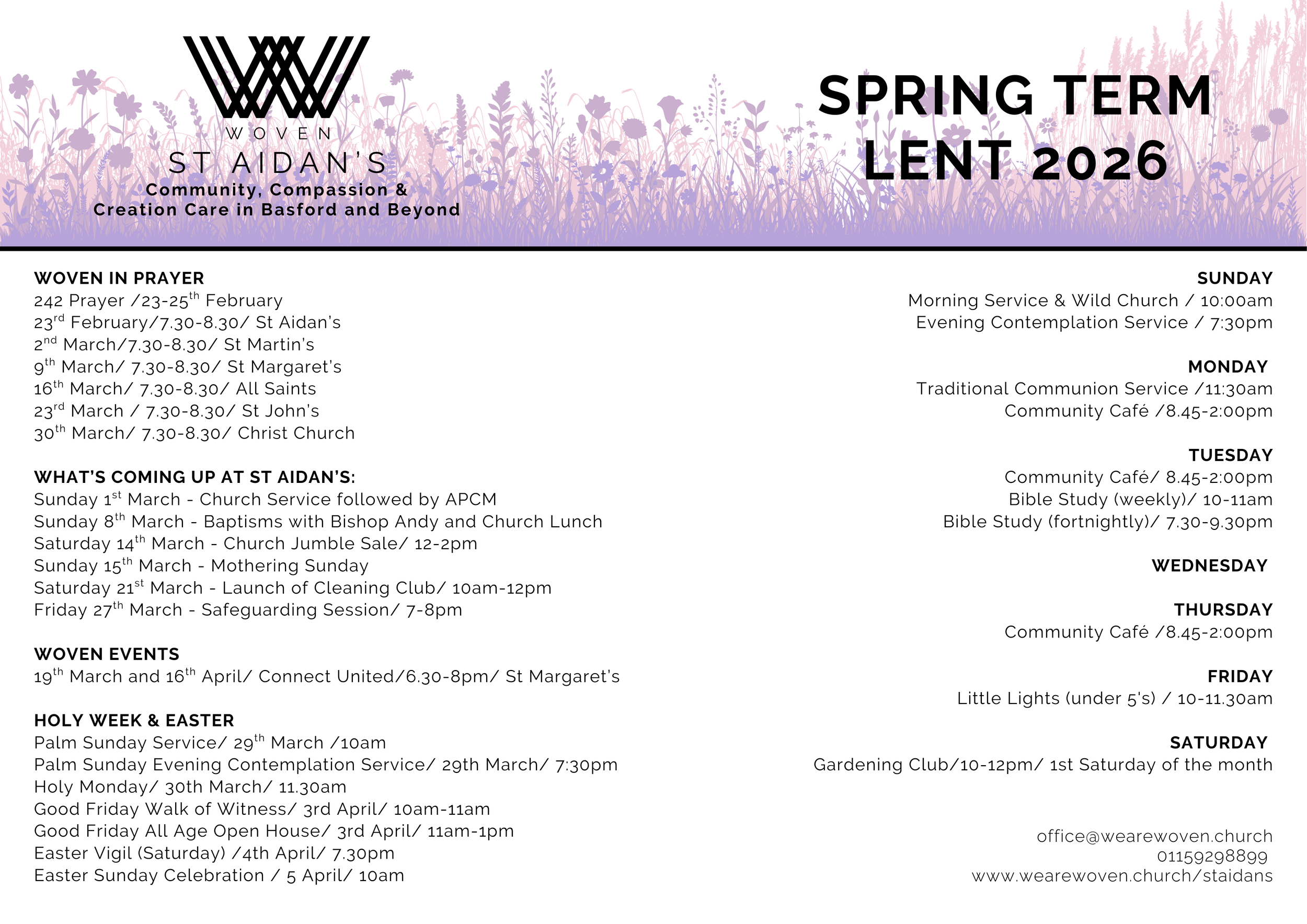 If you are interested in finding out any more information about the events listed on the term card - please contact staidans@wearewoven.church