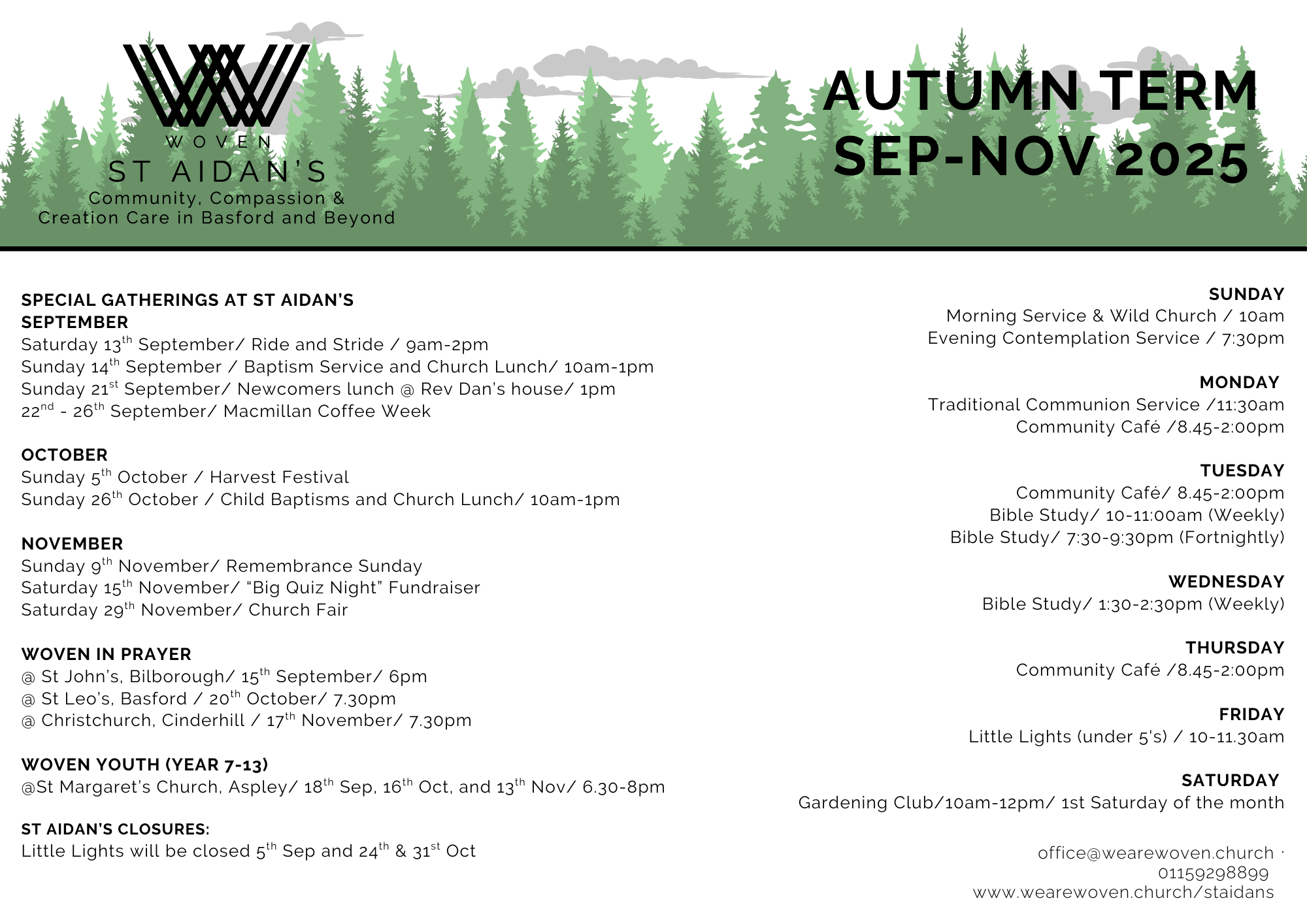 If you are interested in finding out any more information about the events listed on the term card - please contact office@wearewoven.church